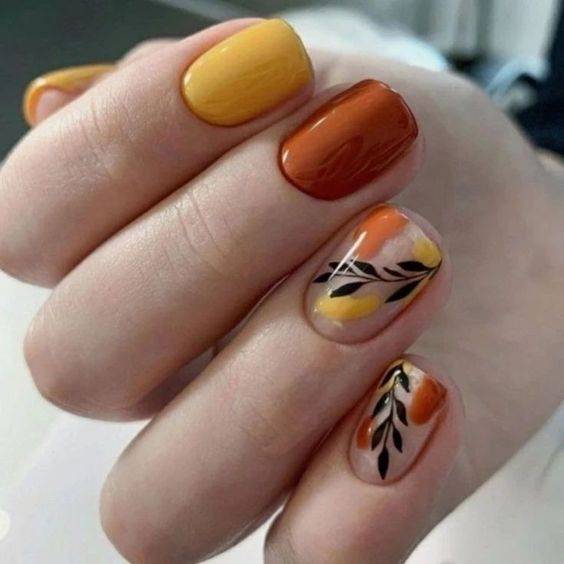 Все цвета лака на ногтях должны быть из одной гаммы. Принцип предельно прост: разноцветный маникюр, например, в оранжевых тонах предполагает, что каждый ноготок окрашен в свой оттенок оранжевого. Таким образом, создается оригинальный градиент.