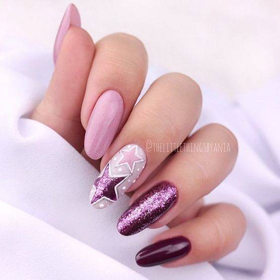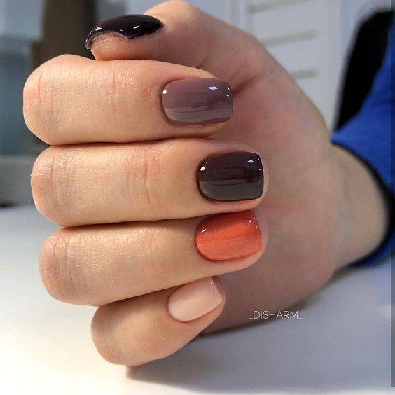 - популярен и маникюр, при котором ногти на разных пальцах окрашиваются в отличающиеся цвета.