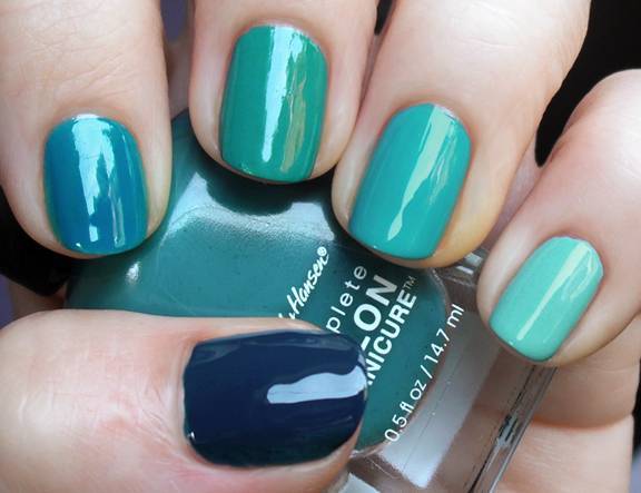 Найти пять лаков близких оттенков достаточно непросто, поэтому можете попытаться смешать два лака для создания всей палитры. Каждый ноготок в итоге должен получиться на 1-2 тона темнее предыдущего.