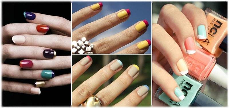 Французский маникюр разными цветами