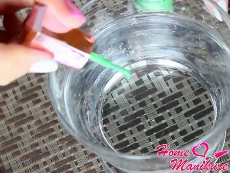 Итак, прежде чем вы приступите к выполнению такого маникюр дома, советуем вам учесть, пожалуй, самое главное правило, так как его соблюдение играет неотъемлемую роль в получении конечного результата: вода в стакане должна быть теплой. Подходящая температура – 40 градусов. Лак просто не растечется на воде, если она будет ледяной.
