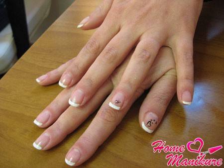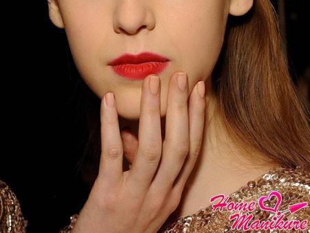 Лёгкий вариант для домашнего исполнения маникюра. Единственное условие – лак должен лежать на ногтях идеально, не заходить на кожу вокруг ногтя, покрывать ногти равномерно