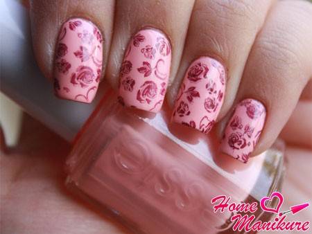 - Маникюр стемпинг. Создать необычный рисунок или узор можно легко, воспользовавшись специальными инструментами — штампом или диском с рисунком. Достаточно покрыть поверхность понравившимся цветом лака и начинайте творить.