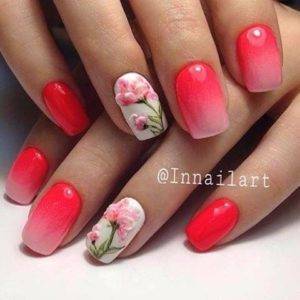- Все оттенки летнего красного: малиново-пурпурные, ало-розовые, оранжево красные в прекрасной технике омбре;