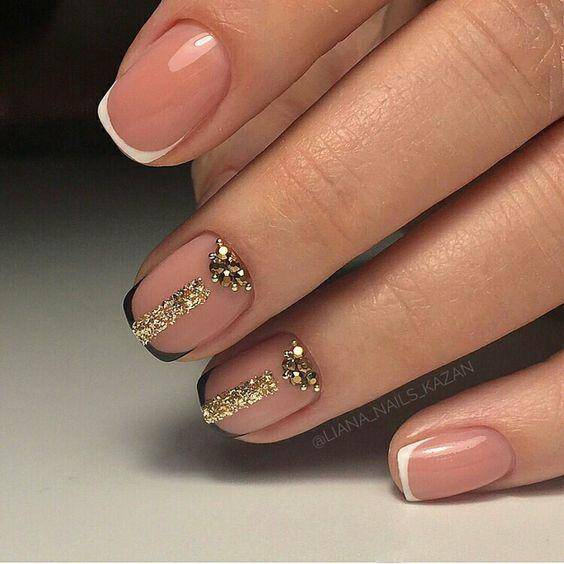 При условии, что школьные правила допускают нанесение на ногти всевозможных рисунков и узоров, можно дополнить декором французский маникюр либо выделить линию улыбки не белым, а каким-нибудь другим пастельным оттенком. Классический или декорированный френч можно сделать и в домашних условиях, потратив на это немного времени и усилий. Примеры элегантного дизайна вы можете увидеть на фото.
