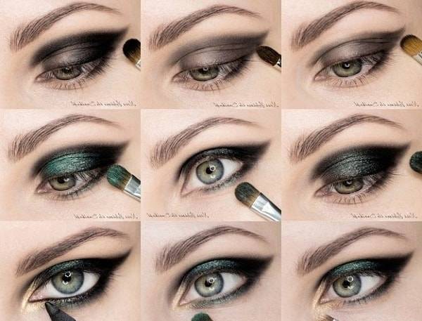 Делаем макияж специально для гармоничного сочетания с золотым платьем