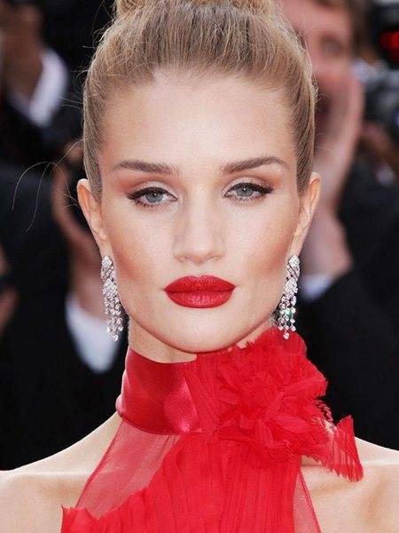 Если вы считаете, что к вашему мероприятию красная помада не подходит, воспользуйтесь помадой оттенка нюд или нанесите на губы прозрачный блеск.