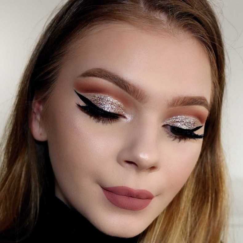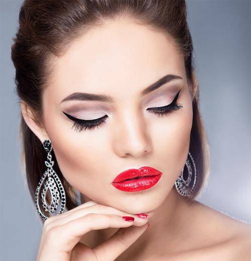 Обладательницам голубых глаз и восточной внешности стоит рассмотреть серебристые, медные и другие оттенки с блеском. Если вы решили выбрать умеренный вечерний макияж глаз, то помаду для губ можно использовать насыщенного цвета. Обольстительно будут смотреться перламутровые варианты с блеском.