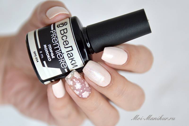Начинать выполнение маникюра нужно стандартно – нанесите базовый слой, затем два слоя