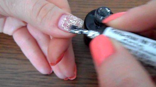 Важно! Желательно на работу с блестками выделить отдельный топ или же отдельную кисть, т.к. мелкие элементы могут все равно попасть во флакон