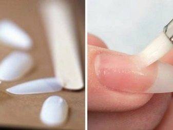 - при моделировании ноготков с использованием искусственных пластин, фиксируемых на клей и закрепляемых акрилом, понадобятся типсы, клей, ножницы и щипцы.