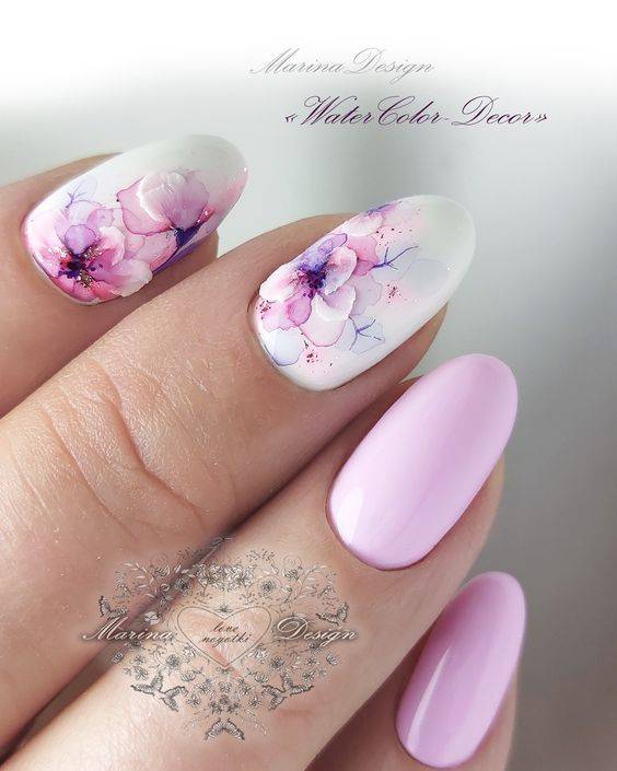 Маникюр с рисунком акварелью: как правильно наносить нужный орнамент?
