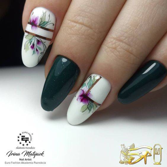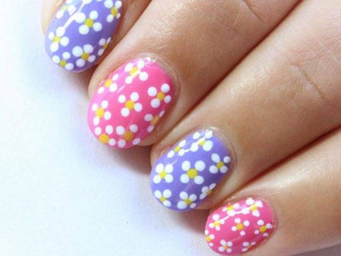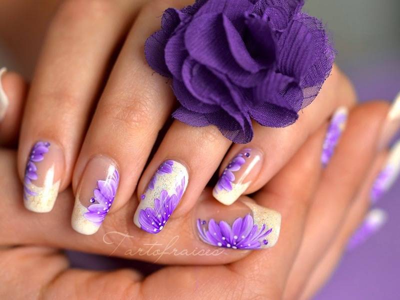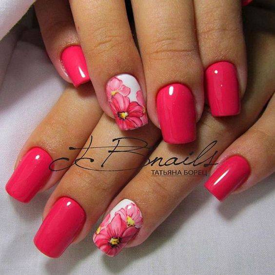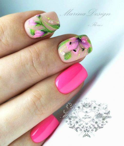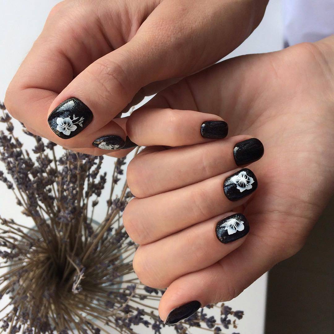 Короткие ногти — не повод горевать. Современная нейл-индустрия создала много уникальных и диковинных разрисовок, художественно-цветовых дизайнов. В некоторых случаях короткие ногти дают возможность создать настолько идеальный маникюр, что в стилистической мере не выполнишь на удлиненной ногтевой пластине. Для коротких ногтей подойдут цветы в стиле минимализм, где рисунки цветов изображены по краю ногтевой пластины. Фантазийные мотивы также будут неплохо смотреться на таких ноготках.