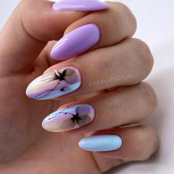 Акварельная техника маникюра наиболее часто используется в весенне-летний период времени. Её востребованность доказана временем и уже является классикой.