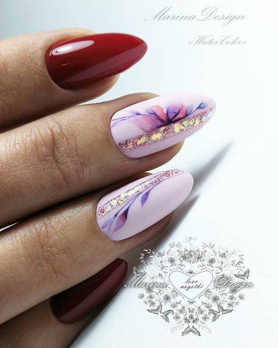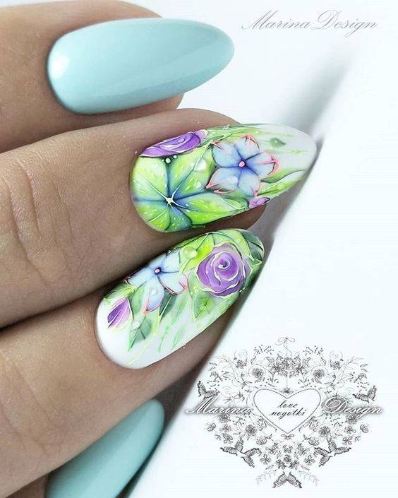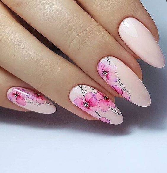 Дизайн цветочного маникюра акварелью подобен произведению искусства, именно поэтому все тонкости цветочного дизайна, трудность нанесения связаны с уровнем художественного навыка у мастера.