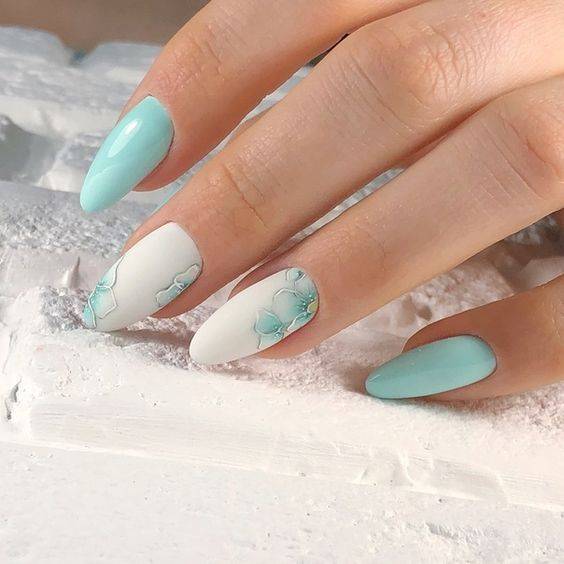 - белые ‒ чаще используются в свадебном маникюре, хорошо сочетаются с блеском и камнями;