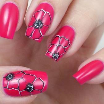 Стоит отметить, что цветочные композиции подходят и для коротких ногтей, и для длинных. Форма тут тоже не играет особой роли. Но на овальной форме любые цветы смотрятся более нежно и женственно, маки – не исключение.
