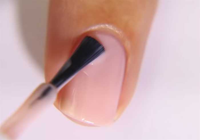 - На подготовленные ноготки нанести базовый лак. Может быть любой цвет.