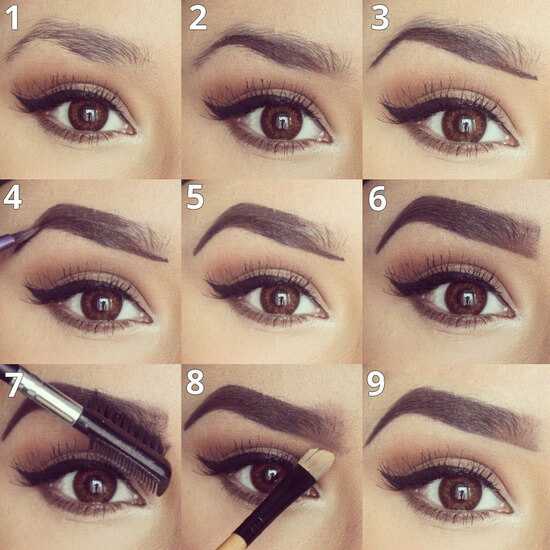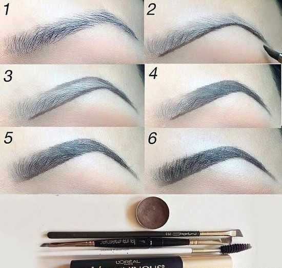 Посвятите дома несколько часов тому, чтобы научиться оформлять брови. Тогда на повседневный макияж у вас будет уходить всего несколько минут. Теперь вы знаете, как нарисовать брови тенями поэтапно. Фото макияжа помогут повторить процесс пошагово.