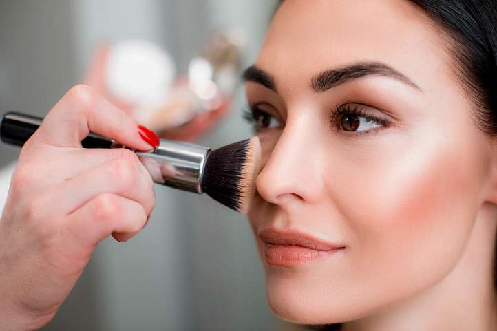 - Далее нанесите тональный состав, и закрепите результат рассыпчатой пудрой, применяя широкую кисть.