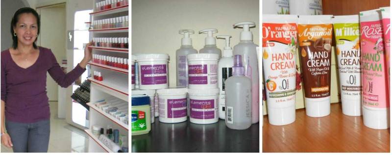 Очень рекомендуем иметь возле себя небольшую витрину с сопутствующим товаром: жидкие ванночки, маски, крема, соли, глина для обертываний, скрабы, травы, масла; пилочки, лаки для ногтей.