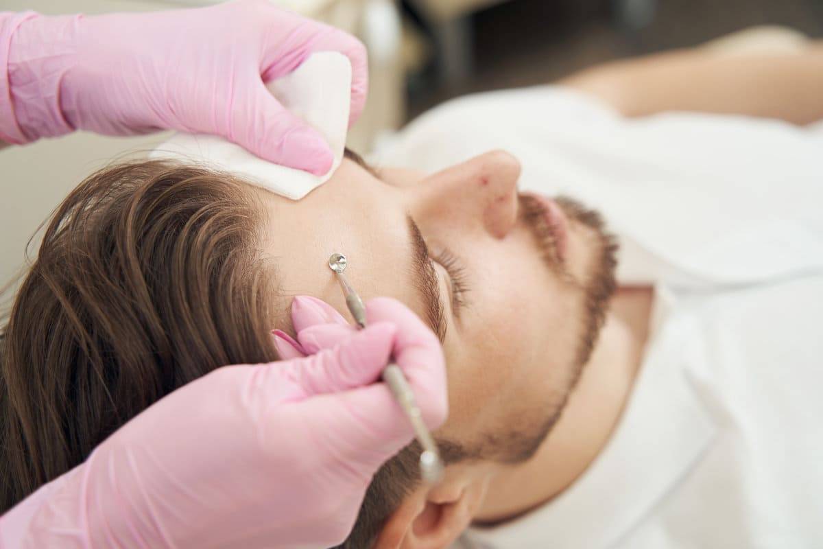 Дезинфицируют пинцет с перчатками и повторяют процедуру на следующей поре.