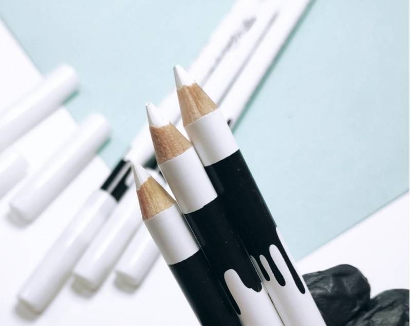 Нам понадобится карандаш, с текстурой именно для бровей и тот, который схож по цвету с вашим волосом брови. Можно использовать белый и так нанести некий эскиз.