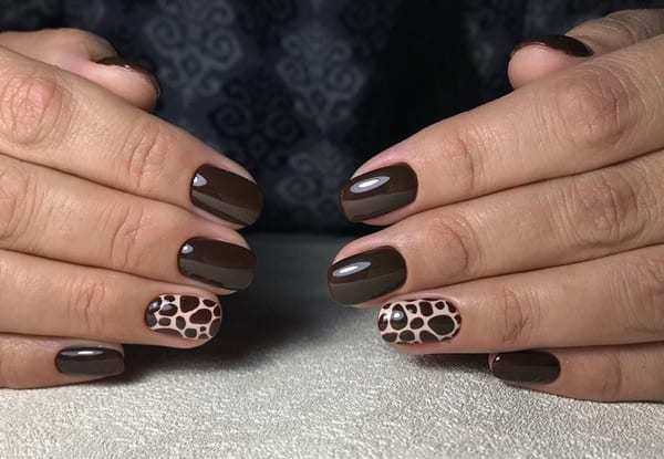 Коричневый цвет идеально подойдет для создания маникюра по фен-шуй особам, родившимся под стихией дерево (4 или 5). Уместной будет и темно-синяя или изумрудная гамма.