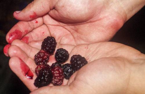 После работы с красящими продуктами (смородина, свекла, вишня) кожа и роговой слой окрашиваются их соком.
