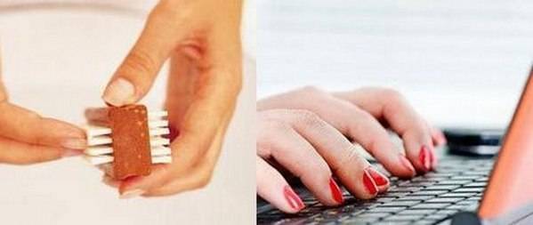 Не забывайте о естественном массаже, который получается от работы на компьютерной клавиатуре, игре на музыкальных инструментах, где есть клавиши и другое. Но, придерживайтесь меры в этом, как бы не получился обратный эффект от чрезмерных нагрузок на ногтевые пластины, в случае чего они начнут заворачиваться.