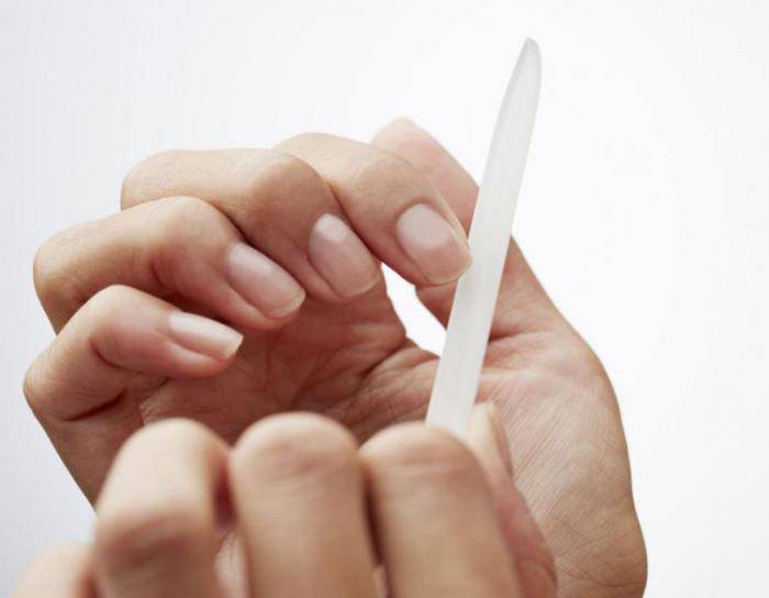 - Не используйте железных пилок, они способствуют расслаиванию ногтя даже при правильной технике опила. Наиболее приемлемый вариант – стеклянные пилки;