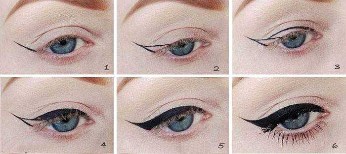 Рисуем стрелки на глазах подводкой поэтапно: фото и комментарии