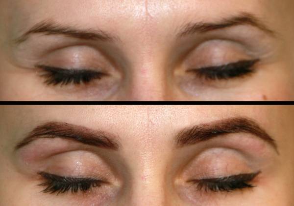 - Потрясающий эффект, который видно сразу. Брови приобретают насыщенный оттенок, за счёт чего становятся привлекательными и выразительными.