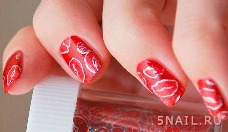 - Отделите плёнку от основы и отпечатайте дизайн на ногтях.