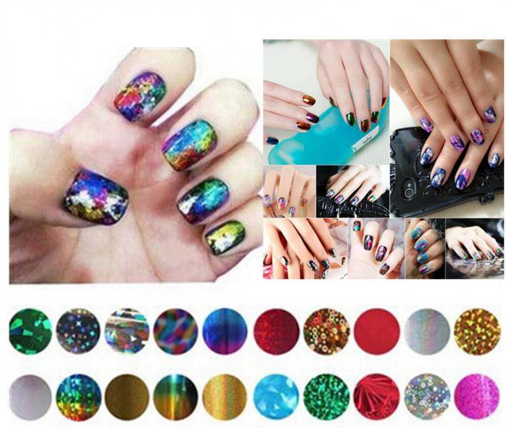 Выбрать нужный вид фольги можно из различных представленных в ногтевом сервисе вариантов: