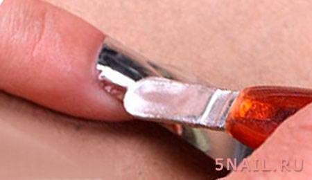 - Снять резким движением, но аккуратно, по направлению от кутикулы.