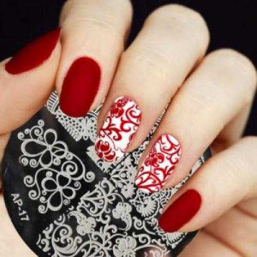 Металлические или пластиковые пластины с выбитым рисунком используются в стемпинге. Для перенесения дизайна на ноготь нужен резиновый или силиконовый штамп, акриловые или гелевые краски. Шаблоны очень прочные и долговечные. Чтобы они давали четкий отпечаток, их нужно регулярно чистить. Стоят дороже клеевых.