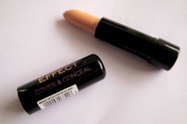Карандаши, они же стики – очень плотные и маскируют пигментные пятна, покраснения, не выпирающие прыщики. Их наносят точечно и сильно не растирают. Из-за плотности они не эффективны для маскировки морщинок у глаз, наоборот, делают их более заметными.