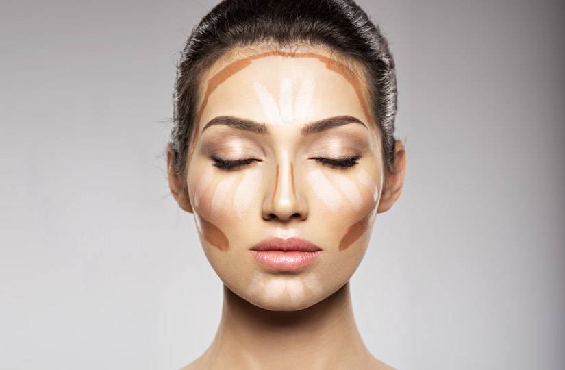 - Выделите темным консилером участки лица, которые необходимо затемнить (боковые стороны носа, впадины на скулах, периметр лица).