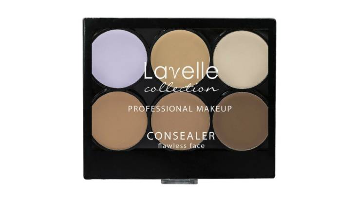 Бюджетная палетка консилеров от Lavelle подходит для маскировки несовершенств (прыщей, кругов под глазами, лопнувших сосудов). В наборе 6 оттенков, производитель предлагает 2 вида палеток. Цвета можно смешивать, некоторые пользуются палеткой для скульптурирования. Благодаря кремообразной текстуре средство быстро высыхает.