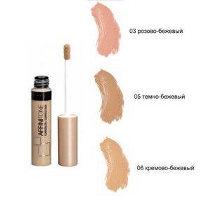 - кремообразное средство в тюбике (иногда с кисточкой или спонжем). Предназначено для «ликвидации» темных кругов под глазами, покраснений и мимических морщинок. Дает легкое покрытие, не утяжеляет макияж.