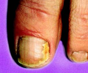 Наиболее часто встречающаяся форма грибка ногтей (75 – 85%)1