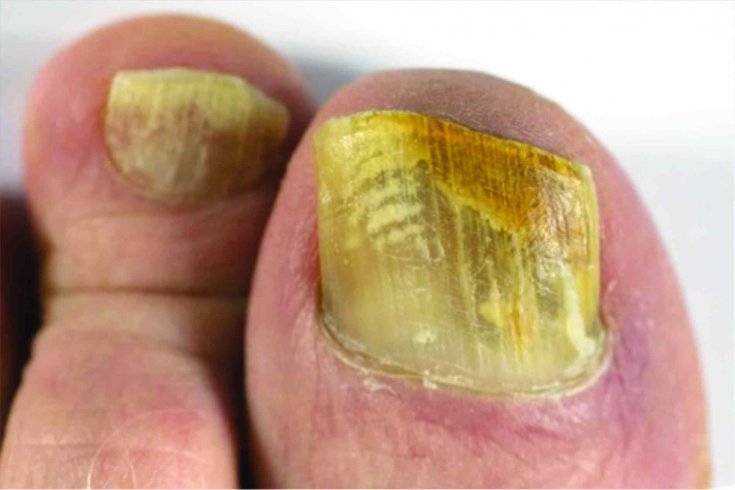 Запущенный грибок ногтей легко можно отличить от здорового ногтя визуально, так как он сильно