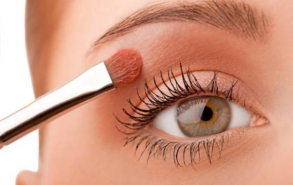Тонирование век тенями производится небольшой кисточкой, начиная от внешних уголков глаз по направлению к внутренним их уголкам. При растушевке кисть должна двигаться снизу вверх, к бровям. Причем, чем ближе к бровям, тем менее насыщенным должен делаться тон. Зачастую наиболее выпуклое место между бровью и линией основания верхних ресниц вообще не покрывают тенями.