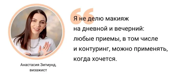 Преподаватель также считает, что нужно адаптировать обычные формы контуринга к своим чертам лица — этому вы можете научиться на уроке макияжа для себя.