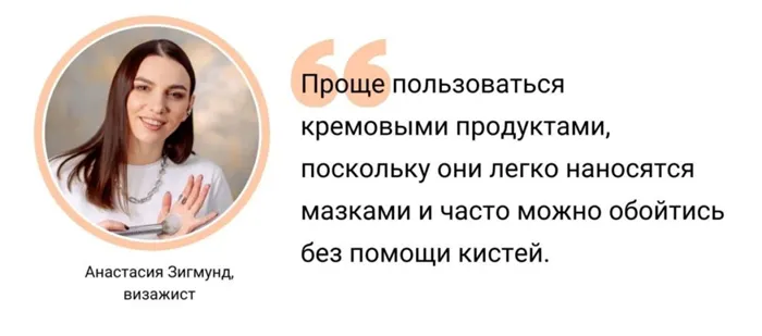 При выборе между сухим и кремовым контурингом визажист Анастасия Зигмунд советует ориентироваться на свои личные предпочтения.