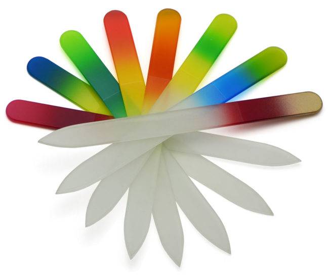 Пилочка. Пилочка нужна для придания формы ногтю после его укорачивания. Она может быть изготовлена из разных материалов. Наиболее популярны стеклянные, хрустальные пилочки, керамические пилочки и т.д. Избегайте устаревших пилочек из металла. Они вредят структуре ногтя.