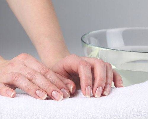 Морскую соль растворите в отваре ромашки, добавьте туда остальные ингредиенты. Держите кончики пальцев в такой ванночке не больше 15 минут. Эфирное масло мирры или ладана в сочетании с морской солью дают быстрые результаты. Также эффективными считаются эфирные масла кедра, лимона, бергамота, иланг — иланг, сосны и лаванды.