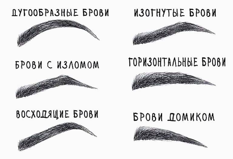Форма бровей должна обязательно подходить к типу внешности. Специалисты выделяют такие формы: