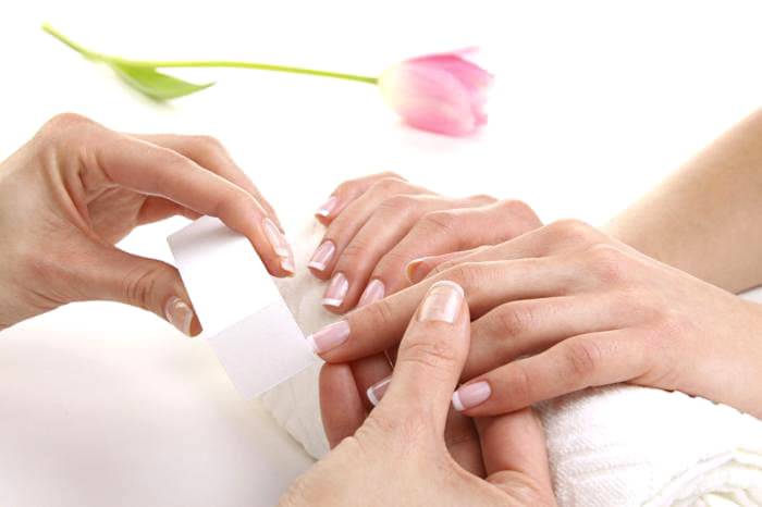 Поверхность ногтя ни в коем случае не нужно спиливать, достаточно лишь лёгкой шлифовки до получения матового оттенка.